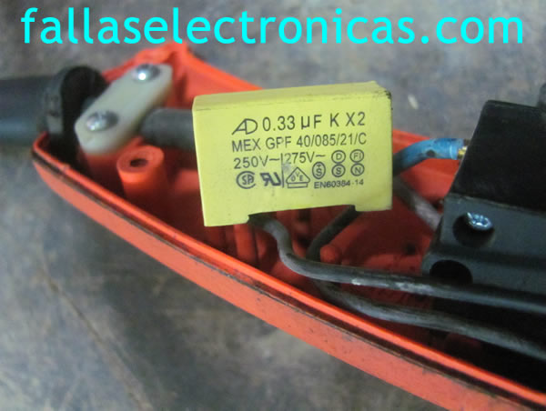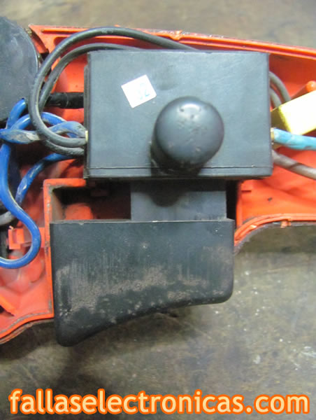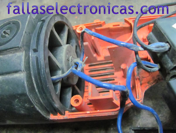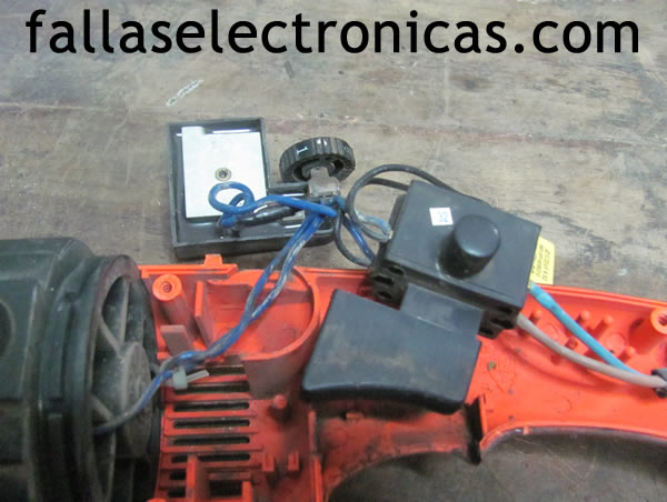 En la imagen de abajo podemos apreciar que retiramos el trimmer, colocarlo directo sin este dispositivo. Eso se puede hacer, sólo lo hacemos para descartar… efectivamente eso era el problema es la razón por el cual está amoladora presentaba falla de intermitencia, es decir, que a veces funcionaba y a veces no.