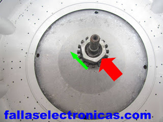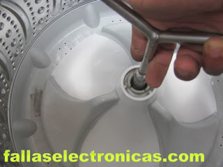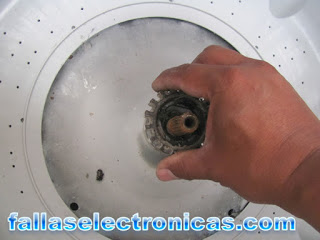 Retirado la mariposa o paleta, debajo encontramos la tuerca que sujeta el tambor donde se coloca la ropa.