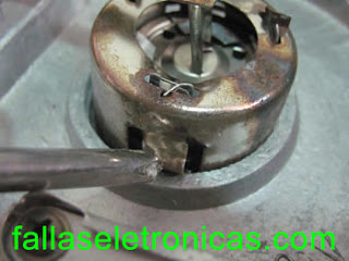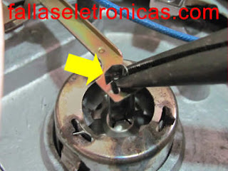 Liberar el sensor de la resistencia: Con un destornillador, se endereza el seguro que mantiene el sensor en contacto con la resistencia. Hágalo con cuidado.